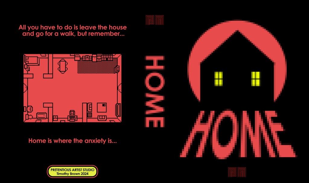 In this game, you attempt to exit your home, which does not want you leave. It is a metaphor about social anxiety, depression, agoraphobia, and feelings of being trapped within yourself.